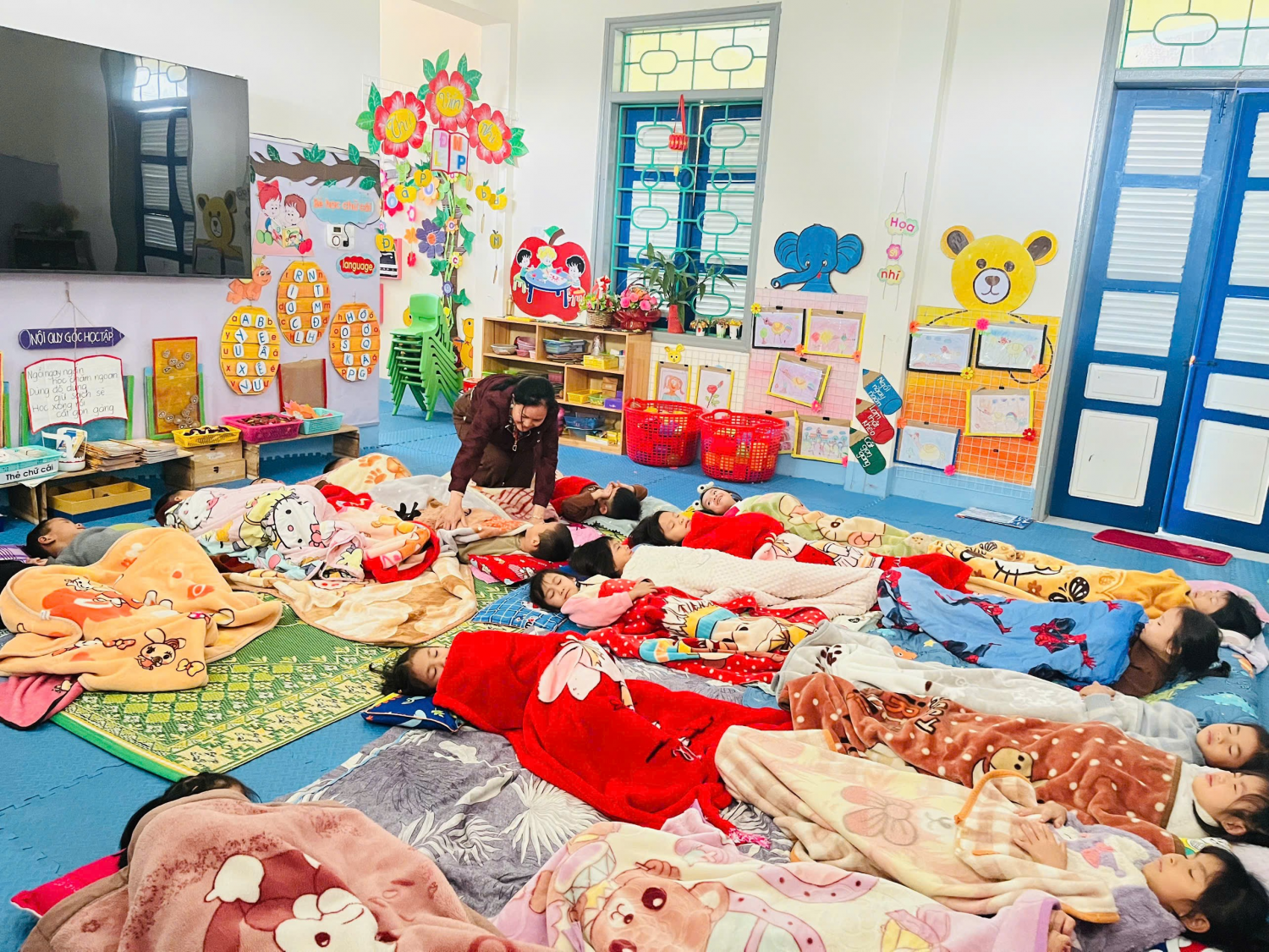 Hoạt động ăn và ngủ trưa tại trường được tổ chức khoa học, an toàn, giúp trẻ hình thành nề nếp sinh hoạt tốt, ăn ngon – ngủ đủ giấc, từ đó phát triển khỏe mạnh và toàn diện. Nhà trường luôn mong nhận được sự phối hợp của quý phụ huynh trong công tác chăm sóc, nuôi dưỡng trẻ.