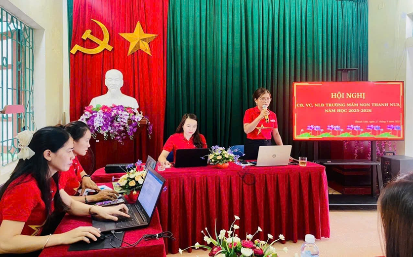 Thực hiện Kế hoạch số 181/KH-MNTN ngày 19/9/2025 của trường Mầm non Thanh Nưa về kế hoạch tổ chức Hội nghị cán bộ, viên chức, người lao động. Ngày 27/09/2025 Trường Mầm non Thanh Nưa long trọng tổ chức Hội nghị cán bộ, viên chức, người lao động năm học 2025-2026.